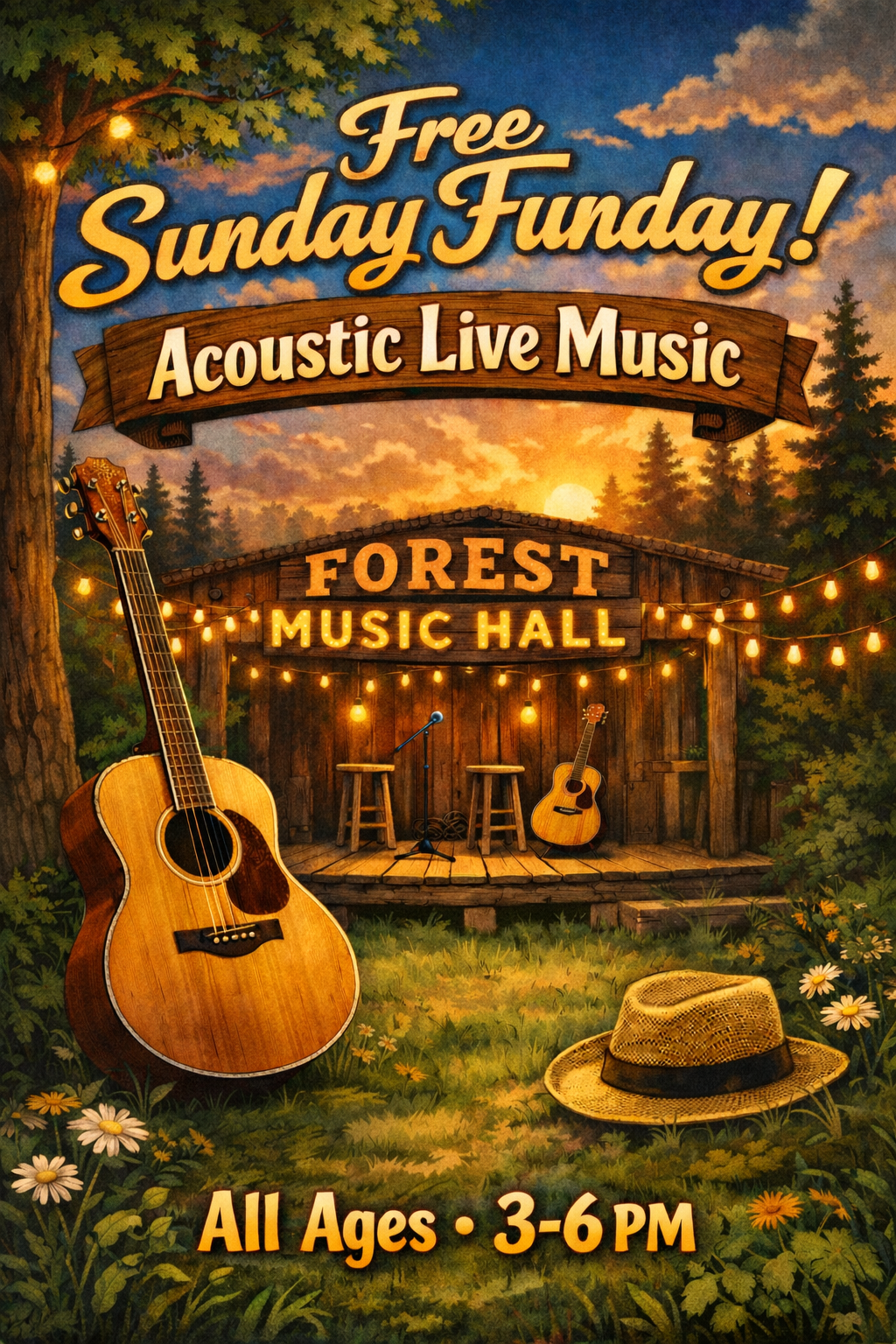 Event Notice: Events are independently presented by the performing artist(s). Floyd County Brewing Company and The Enchanted Forest & Music Hall, also referred as Thirst & Main provide the venue space only and do not produce, promote, or present the event. Any admission charges are collected on behalf of the performing artist(s), who retain all ticket revenue except for a nominal administrative processing fee. The venue’s primary business is the sale of food and beverages, and live music is provided as incidental entertainment for guests.